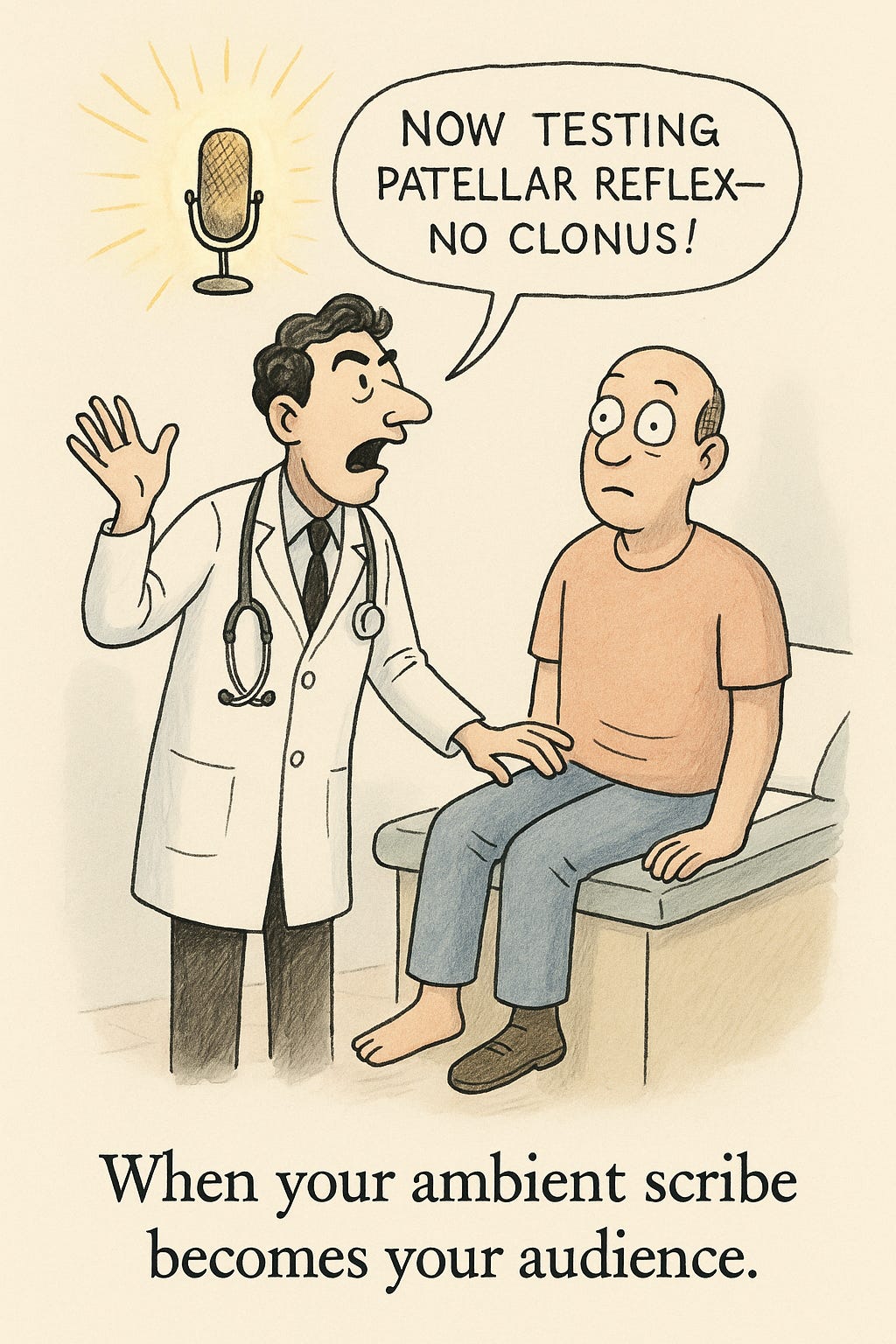Perhaps the biggest leap in using an ambient scribe effectively is learning to communicate with it as you would with an assistant. This means embracing an “expressive voice” workflow – essentially narrating to the AI when appropriate – instead of either staying mute or, conversely, awkwardly dictating everything in front of the patient. Done right, this approach lets you capture a richly detailed note without compromising the patient’s experience. Here’s how I do it: